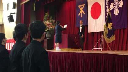 今市中学校では、本校卒業生が新入生代表であいさつをしました。立派にその役目を果たしていました。