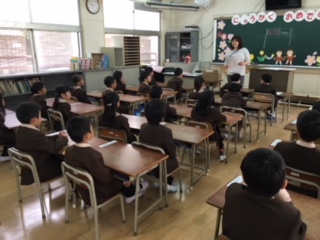 教室でランドセルや教科書などのしまい方を勉強しました。大切な手紙もきちんと折って、連絡袋に入れます。プリントを後ろの席の人に渡すときは、「はい、どうぞ」と言って渡します。貰った人は「ありがとう」。ちょっとした声かけが、優しい気持ちになり、穏やかに学習に入ることができますね。すぐに覚えてきちんとできる1年生です!