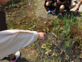 黒メダカの泳ぐ様子が見られるようになりました。寒い間は、底の方にいて全く見えなかったのが、たくさん動き回っています。