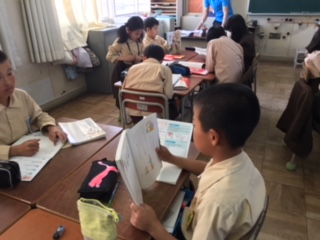 子ども達は、昨年いろいろな音読の方法を身に付けているので、グループで工夫して音読をしています。