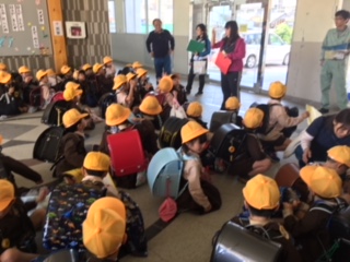 玄関で全員集合して、それぞれの方向に分かれて下校指導をしています。いきいき活動に参加する子も増えてきて、いきいきの先生も毎日玄関まで来てくださっています。