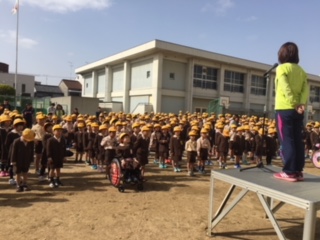 1年生も入っての初めての全校朝会です。しっかり話を聞こうとする気持ちがどの子の顔にも表れていました。