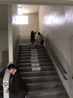 エレベーターホールには、傘立てや車椅子などが置いてあります。それらを退けて、きちんと履き掃除をしてくれています。階段も綺麗になりました!