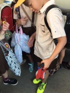 「先生に挑戦!」とばかりに、次々と握力を測定する子ども達。結果はいかに?!
