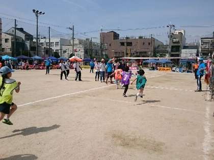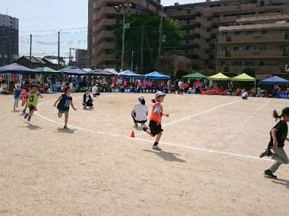 小学生徒競走(1・2・3年生の部)です。高学年に負けないほどの熱い戦いが繰り広げられました。