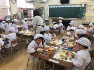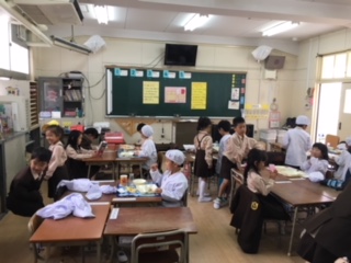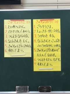 明日は、入学して初めての参観です。給食の準備〜配膳(給食当番活動の様子)〜食事中の様子〜後片付けなどを見ていただきます。