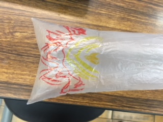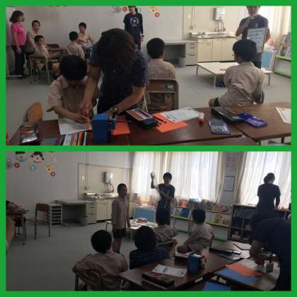 今年度になって2回目のひまわりタイムです。今年頑張りたいことを一人一人が書きました。その後、傘の袋を使ったロケット作りをしました。O先生のアイディアです。マジックで好きな模様を描いてふくらませて飛ばしっこをしました。