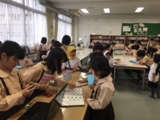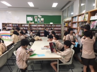 図書委員会児童による図書館開放時には、沢山の子どもたちが読書を楽しみに、来館しています。これは先週の昼休みの様子です。