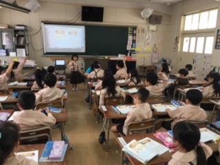 1から10までの数について学習しています。ブロックの数を数えて書きました。前に出て発表します。友達がどんな風に書くか、しっかり見ていて、同じだったら黙って手を挙げて意思表示をしています。