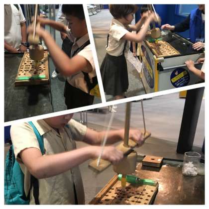 お弁当の後、プラネタリウムを見学し、最後にもう一度体験コーナーを回りました。もっとやってみたい!なんでこんなことが起きるのかな?などなど子どもたちの科学に対する興味・関心がとても高まりました。少し難しい内容もあったのですが、本やインターネットなどで調べようと思っている子もいるかもしれません。また、何年か経ってあああの時の実験は、これだったんだと気付くこともあるかもしれません。子どもたちが、もっと「理科好き」になってくれたらうれしく思います。