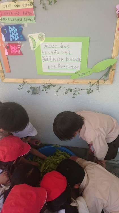 おうちでも、子どもたちと一緒にえんどう豆を、むいてみてはいかがでしょうか。食卓から、旬を楽しむのもすてきですね。