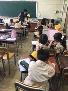 放課後のおさらい教室の様子です。今年は、宿題の他に、復習プリントもやって帰るようにしています。集中して取り組むとたくさんできますよ。担当の先生が、いろいろ自作教材を作って工夫してくださっています。