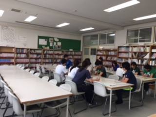 子ども達が帰った後、若手の先生達が、図書室で生活指導など、子ども達の日頃の指導について研修会を開いていました。月一回、講師を交代して研修会を開く予定です。