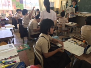 学年を3グループに分けて学習しています。説明文「動物の体と気候」の用紙をまとめたり、それを発表して感想を述べ合ったりしています。