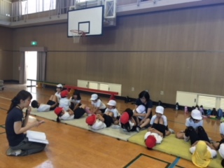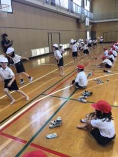 反復横跳びと上体反らしの記録を取っていました。回数を数える子達もしっかり数えています。去年の記録と比べてどうだったかな?