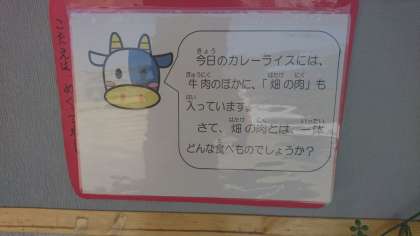 豆が苦手な児童が多いようですが、「カレーに入っていて食べれた!」と話してくれた子もいて、どのクラスも食缶は空っぽでした。苦手な食材も大好きな料理にに入っていると食べやすいようですね。