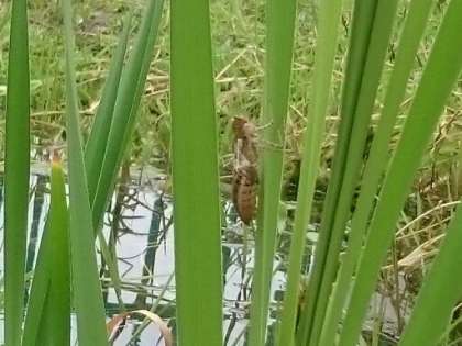 また、ヤゴの脱け殻を見つけました。大きいです。おそらくヤンマ系のトンボです。どこに飛んでいったのでしょう?気になります。また、大宮小学校のビオトープに帰って来てくれると嬉しいですね。