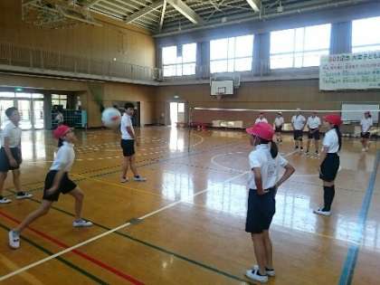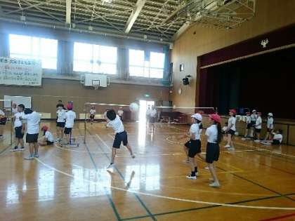 体育館でミニソフトバレーボールに取り組みました。ボールが柔らかいので、怖がることなく、みんなが楽しめます。5〜6人ほどのチームで練習し、どんどん試合を行いました。力加減を考えてサーブを決める子が多かったです。笑顔がはじけ、バレーボールに親しんでいました。中学校での部活動でバレーボール部を選ぶのもいいかもしれませんね。