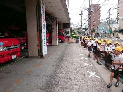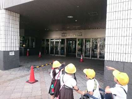 2年生が生活科の学習でまちたんけんを行いました。ずっと雨が降って延期になっていたので、子どもたちは行く前から、とてもうれしそうでした。大宮小学校の校区は、子どもたちにとってとても広いので、新しい発見をたくさんできることを期待して出発しました。
