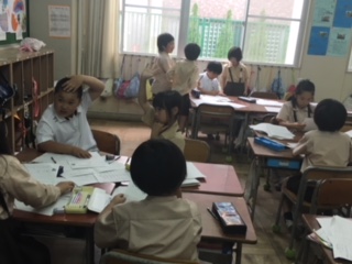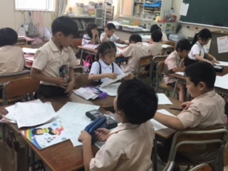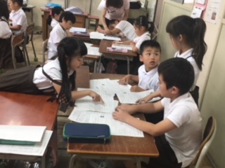 来週の火曜日に、大宮商店街を町探検します。その時にどんなことに気をつけて見てくるか、どんな質問をするかなどを班で話し合いました。商店街にはたくさんお店があります。マナーに気をつけながら、たくさんのことを見て、聞いて学んで欲しいです。
