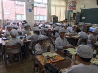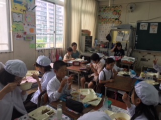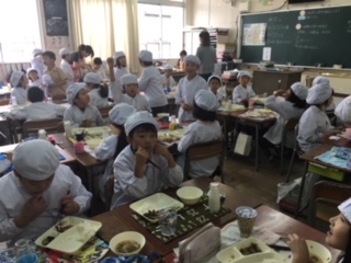 今週、アメリカから体験入学していたSさんも一緒に美味しく給食を。また大宮小学校に来てくださいね。待っています!!