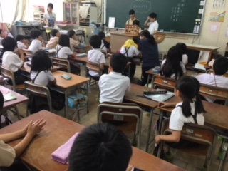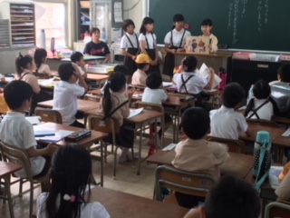 図書委員会児童が、低学年のクラスを回って読み聞かせです。紙芝居のめくり方も工夫をして、一年生の子どもたちが、考えながら楽しめるようにしていてなるほど!と感心しました。