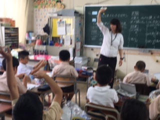 光電池を使った研究授業を1.2時間目にO先生が行いました。電池を使ってプロペラを回したり、車を走らせていましたが、光電池を使ってもうまく動かすことができるのか色々試しました。