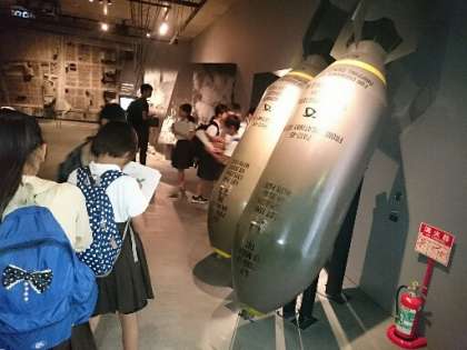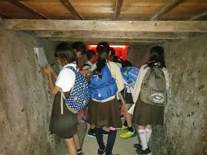 平和学習でピースおおさかを見学しました。たくさんの展示物や資料に圧倒されながらも(特に1トン爆弾や焼夷弾、防空壕体験)、子どもたちは多くのことを知ることができました。グループで協力して見て回り、詳しくワークシートに記録していました。また、十六地蔵物語の映画を見て、戦時中に疎開した子どもたちの生活の様子を知り、彼らに起こった悲劇に心が揺さぶられた様子でした。