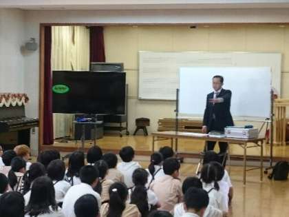税務署の方が来校され、租税教室を開いてくださいました。一番身近にあるのが、消費税。それ以外にもたくさんの種類の税があることを知りました。ゴルフ場使用税なんていう税もあり、子どもたちは驚いていました。みんなの生活になくてはならない税。正しく理解していくことで大人に一歩近づきましたね。