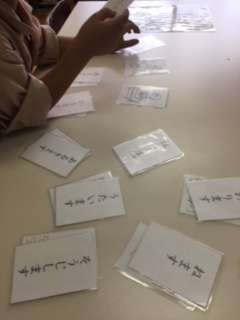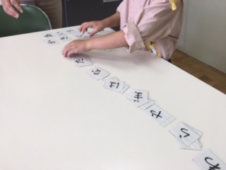 本校には外国から渡日した子ども達も在籍しています。教育委員会から専門の先生に来ていただき、日本語の学習を週1回、個別にしてもらっています。日常会話に関しては、子どもは、すぐに覚えますが、学習言語としての日本語をきちんと教えることが大切です。担任の先生とも毎日簡単な言葉の練習をしています。今日は、言葉のカルタ取り。読み手になったり、札を取ったりとまだ一か月ほどしか経っていないのですが、たくさんの言葉やフレーズを覚えてきています。