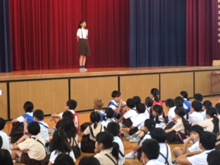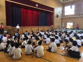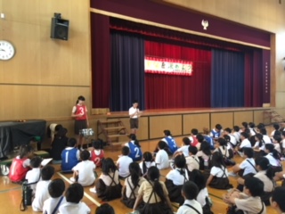 開会式(オープニングセレモニー)を講堂で行いました。代表委員会などの実行委員が作った「きずなを深めよう」のテーマの看板が降ろされ、気分も最高潮に!!