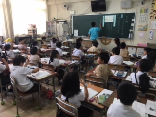 「お手紙」の学習です。手紙を一度ももらったことがないがまくんと、それを聞いて悲しい気分になって寄り添うかえるくん。教科書の文章から、2人がしたこと、言ったことなどを見つけ、2人の気持ちを考えました。「一人学び」で、自分で答えを見つけ、サイトラインを引き、友達と交流して答えを見つけていきます。
