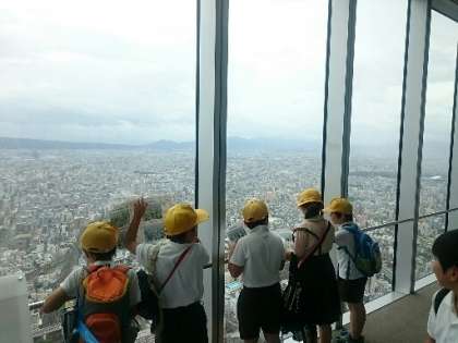 東西南北、大阪平野がどこまでも遠くまで見渡せます。海、山、川、街のようす、道路や線路の交通網…。教科書や地図で学習した内容を、実際に目で見て確かめることができました。