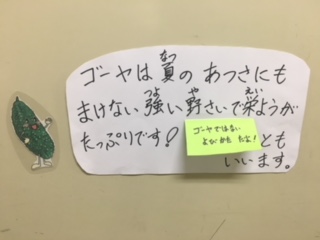 栄養教諭のF先生が、食育ルーム(1階玄関入って左)前に食べ物に関するクイズなどいろいろ掲示してくださっています。来週から始まる懇談会の前後にちょっと覗いて見てくださいね。子ども達の給食時の写真なども部屋の中に張り出す予定です。