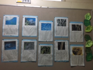 国語科で説明文「自然のかくし絵」を学習しました。その後、図書室の本などを使って教科書以外の保護色で身を守る動植物調べ、まとめました。階段踊り場に掲示してあります。ご覧ください。