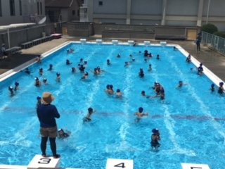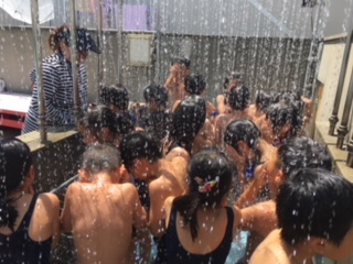 大きなプールにもすっかり慣れてきた1年生です。しっかりシャワーを浴びて、水遊びです。今日はとても暑くて、プール日和でした!