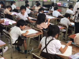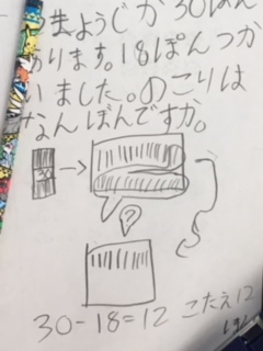 テストプリントをやっていました。たし算やひき算の問題です。見直しも何回もしました。できた子は、裏に自分で問題を作って解いています。