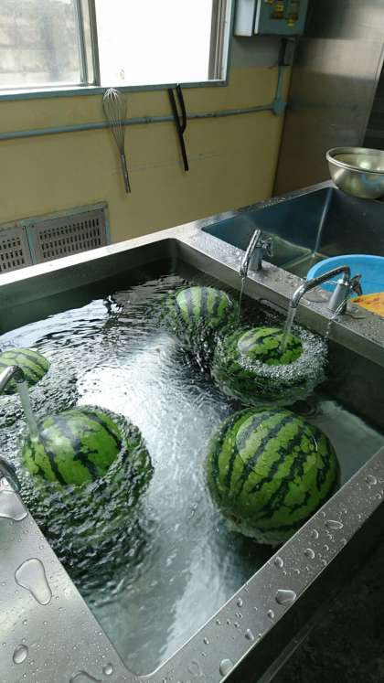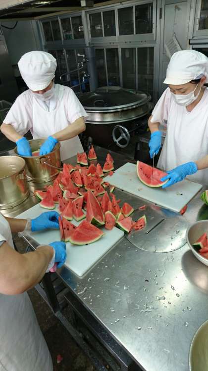 上手に切ったすいかが崩れてしまわないように、丁寧に食缶に入れてくれていましたよ。