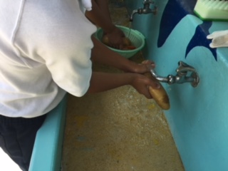 野菜を洗ったり、お米をといだりします。事前に配ってもらったしおりには、詳しく説明がかいてありますが、みんな読んだかな?!
