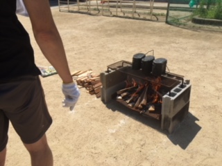 火のおこし方の説明を聞いて、それぞれの班で挑戦。廃材の木がよく乾燥していたのですぐに火がおこりました。