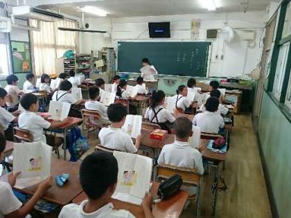 続いて4年生にもY先生が授業を行っていただきました。「走れ!」の教材で、色々な音読について教えてくださいました。追っかけ読み、リレー読み、役割読み、たけのこ読み、などを教わり、子どもたちはあらゆる読み方にチャレンジしました。はじめは小さかったり、そろわなかったりした声でしたが、ほめられ、認められるうちに、元気が出て、気持ちもこもり、どんどん音読が上達しました。