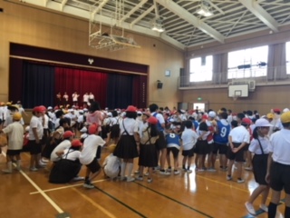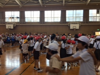 1学期最期の児童集会でした。「ジャンケンゲーム」をしました。集会委員会の子ども達が計画して、準備もしていましたが、少し早めにゲームを終わり教室に戻りました。