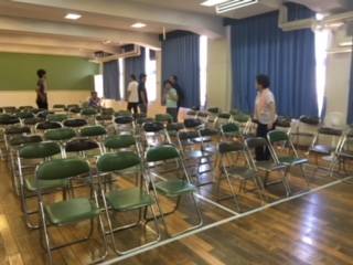 ※熱中症対策のため、講堂でかローリングをする予定でしたが、多目的室で行います。