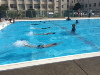 8時50分より特別練習を開始しました。クロールで3年生は15m、4年生は20m、5.6年生は25mを目標にしています。特練2日目、合格する子、記録が伸びた子などが増えてきました。