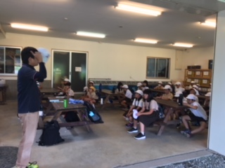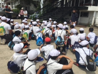 避難訓練は、「お・は・し・も」の約束を守って玄関前に集合。慣れない場所で少し時間がかかってしまいました。部屋の人数、メンバーを全員がきちんと把握して、てきぱきと動かないといけないことを学びました。
