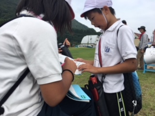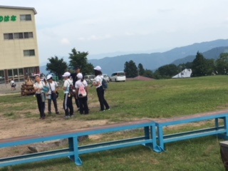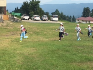ネイチャービンゴをしています。広い草原をポイントを探してグループで回っています。