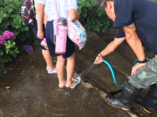サンダイフクさんに汚れた足、上靴を洗ってもらいました。至れり尽くせりです。