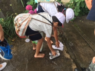 林間学習 魚つかみが終わって