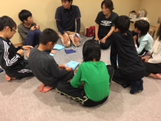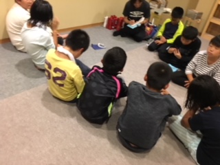 キャンプファイヤー後、宿舎に戻って活動班、室長会議を行いました。今日1日を振り返ってリーダーとして自分の感想を言った後、友達の良かったところ、頑張ったこと、見つけた自然の数々などについて話をしました。前向きな話し合いでした。きっと明日もみんなをリードしてしっかり頑張ってくれることでしょう。