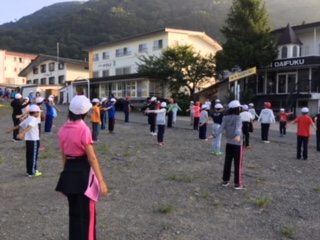 6時起床。全員元気です。朝の高原の空気を味わいながらラジオ体操をしました。